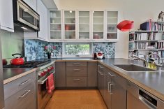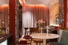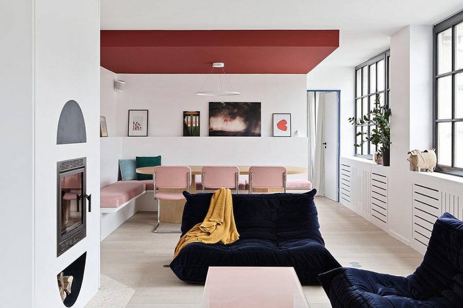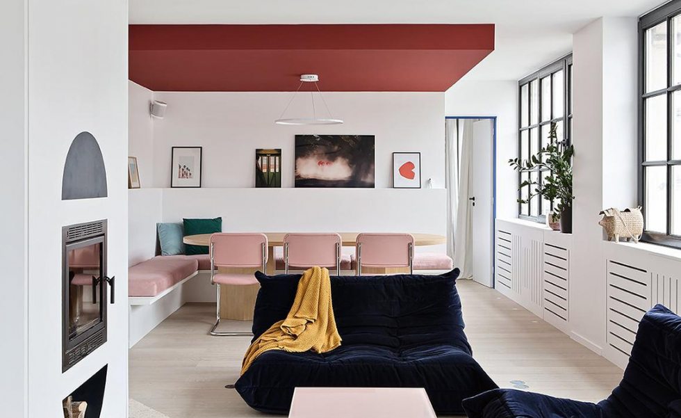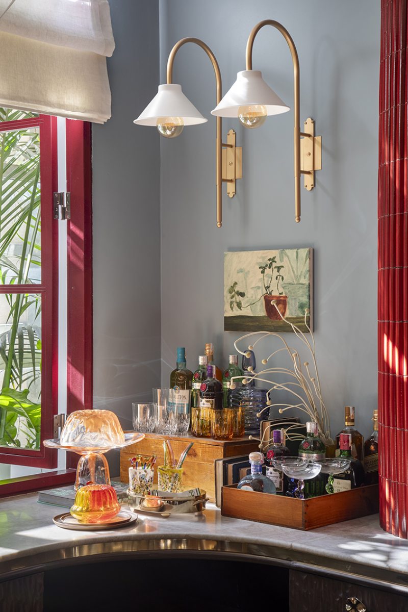 Entre as formas mais seguras de incorporá-lo estão os elementos pontuais, como portas, cadeiras, objetos soltos ou quadros. Mas há projetos que ousam mais — aplicando a cor em revestimentos de cozinha, paredes inteiras, tetos, louças, móveis sob medida e até em superfícies de trabalho, criando composições surpreendentes.