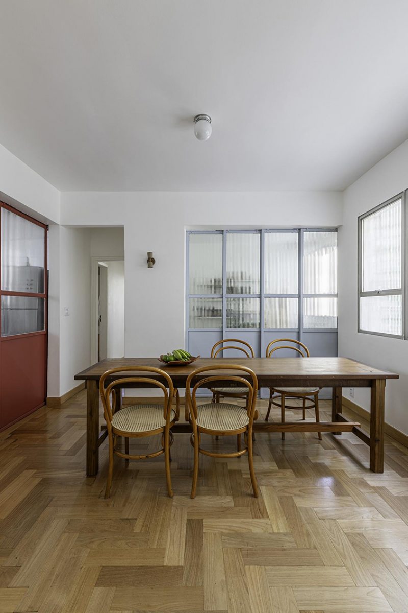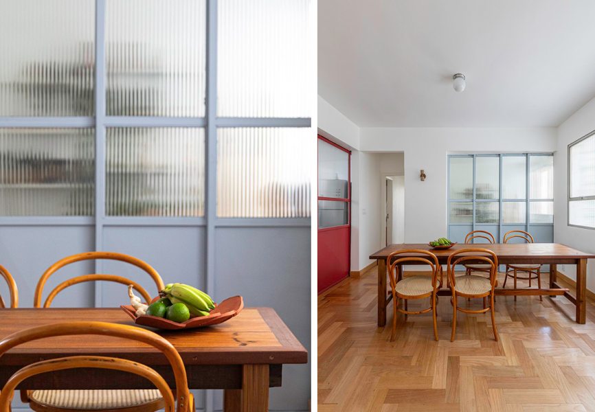 O uso do produto remete ao período de prosperidade no design brasileiro e internacional nas décadas de 1950 e 1960, quando era amplamente adotado em janelas, divisórias, portas e móveis com estética modernista, valorizando luz, textura e privacidade. Associado ao estilo mid-century modern, que priorizava linhas limpas, funcionalidade e integração com a luz natural, ele agora retorna como tendência associada ao estilo retrô-contemporâneo como apresentado neste projeto de reforma assinado pelo Estúdio Pedro Haruf em um apartamento no bairro São Bento, em Belo Horizonte.