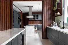 Do ponto de vista do décor, o projeto aposta em tons escuros para reforçar a atmosfera contemporânea. O mobiliário sob medida conversa com peças soltas de design assinado. Os tapetes da Persépolis completam a ambientação com conforto, criando pontos de aconchego nos ambientes principais. A obra levou cerca de quatro anos para ser concluída, com uma pausa durante a pandemia.